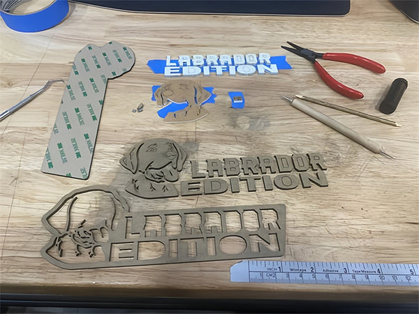 Show your love for dogs with these laser cut, inlay, acrylic dog Edition car badges blacked with adhesive tape.