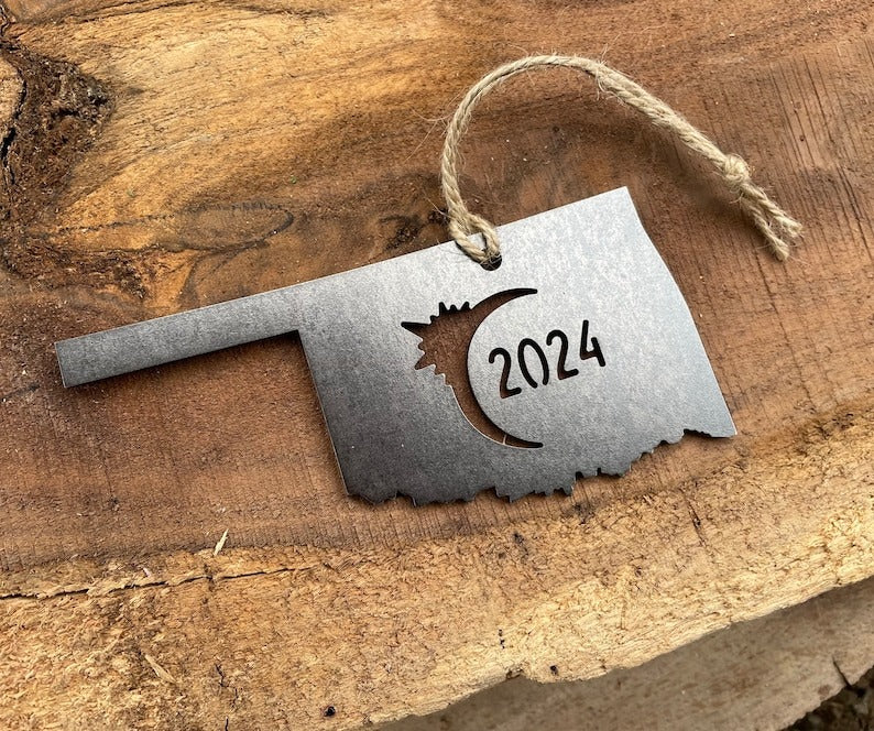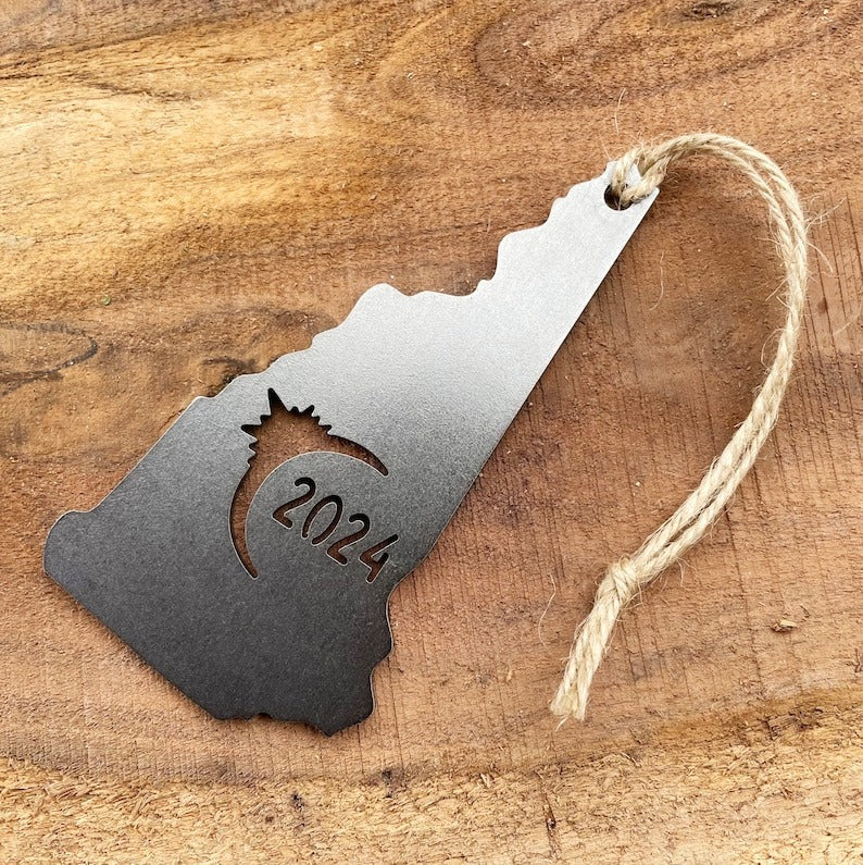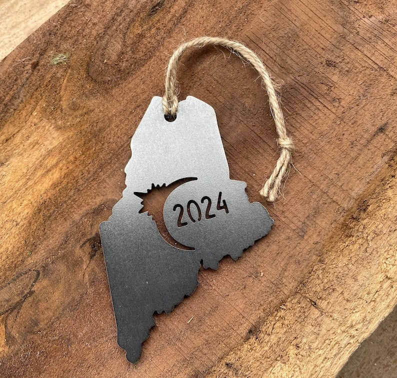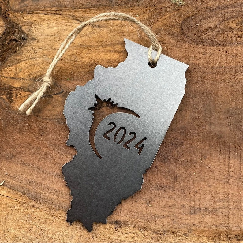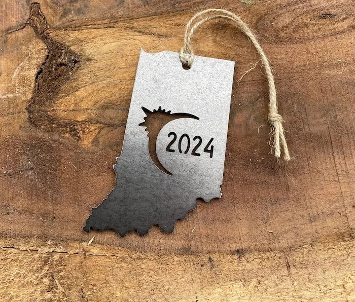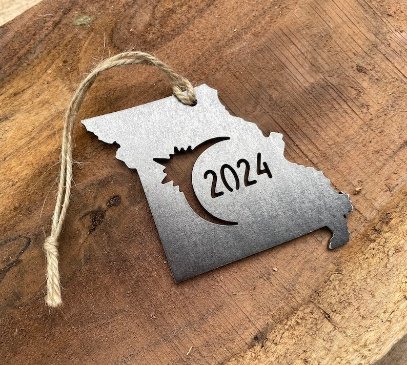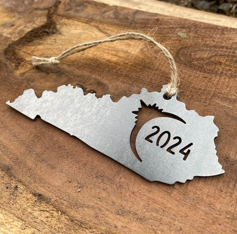 This metal ornament gift commemorates the April 8, 2024, total solar eclipse that spans North America.