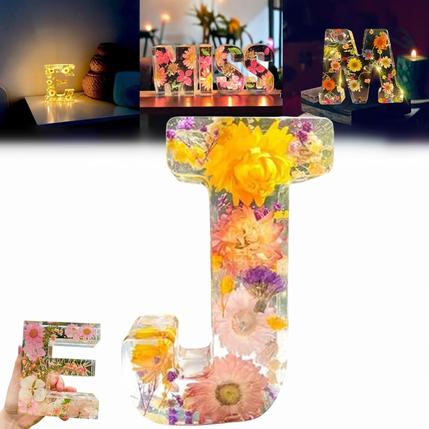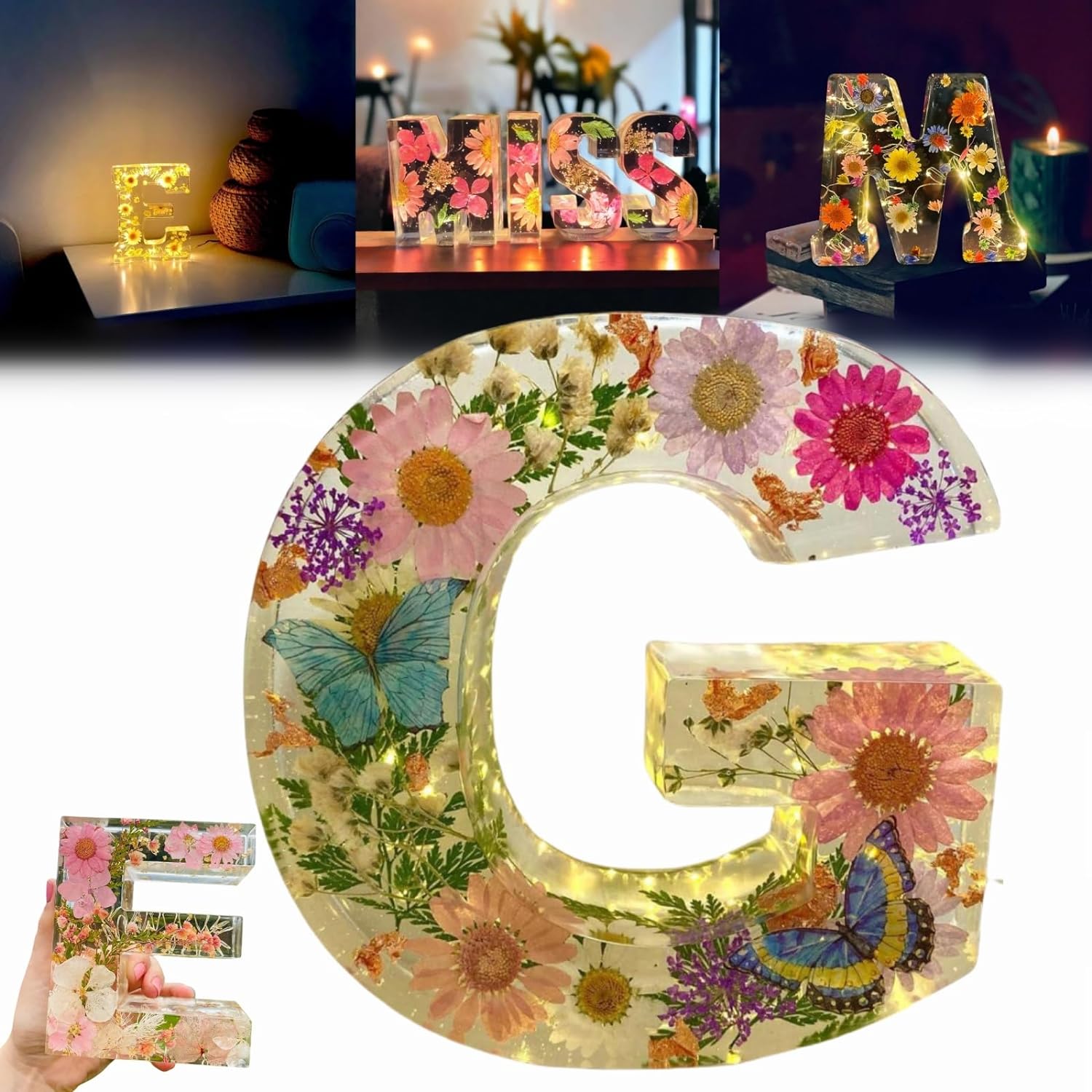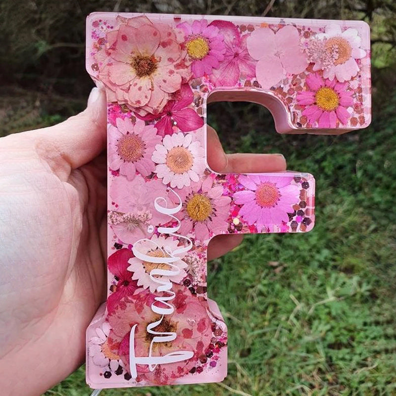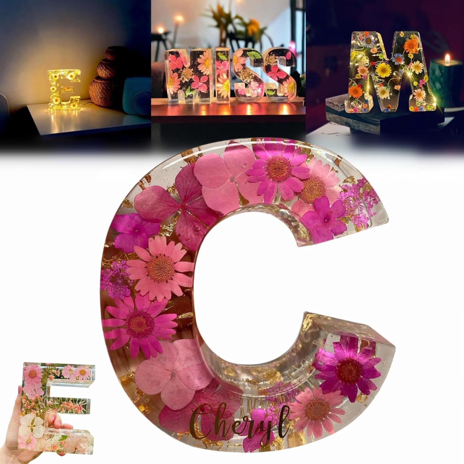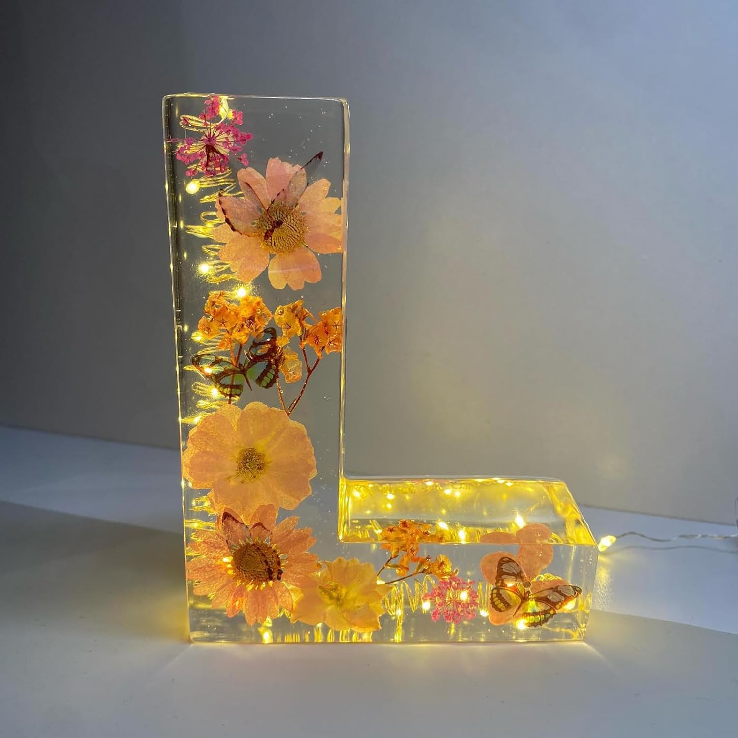 Illuminate your space with the enchanting glow of our Floral Resin Night Light, meticulously crafted with dried flowers encapsulated in crystal-clear resin. This personalized alphabet design adds a touch of nature and elegance to any room, making it a perfect gift or unique decor piece.