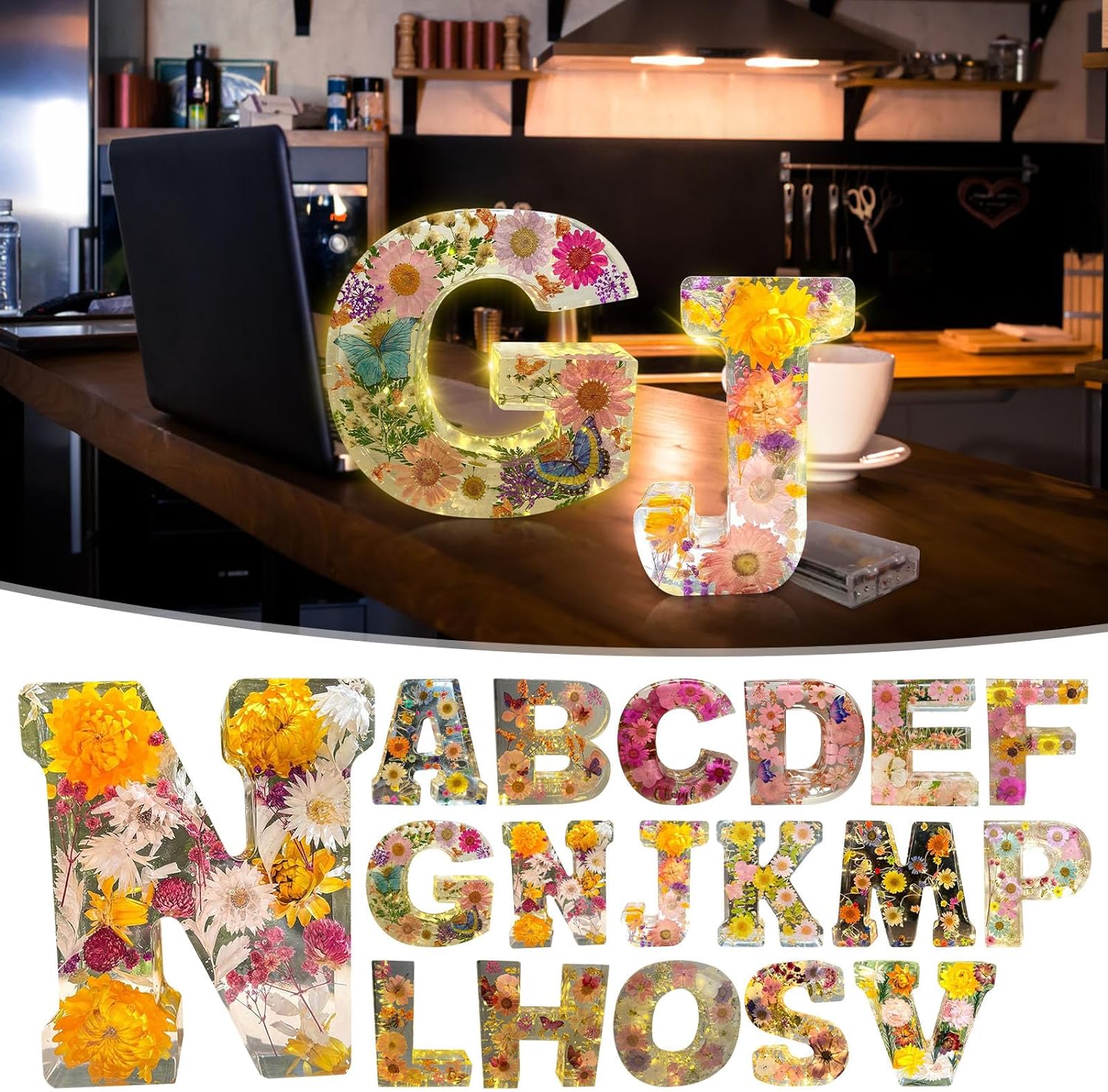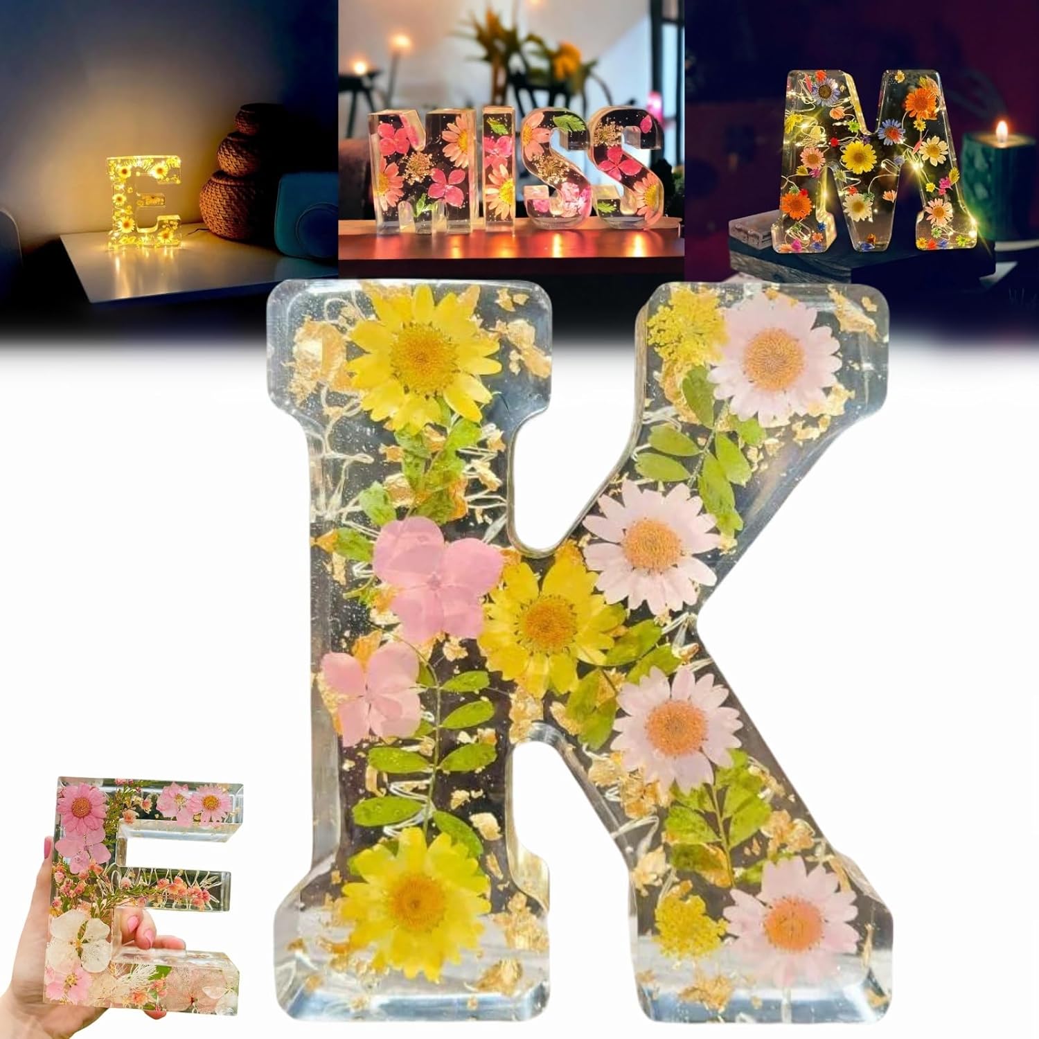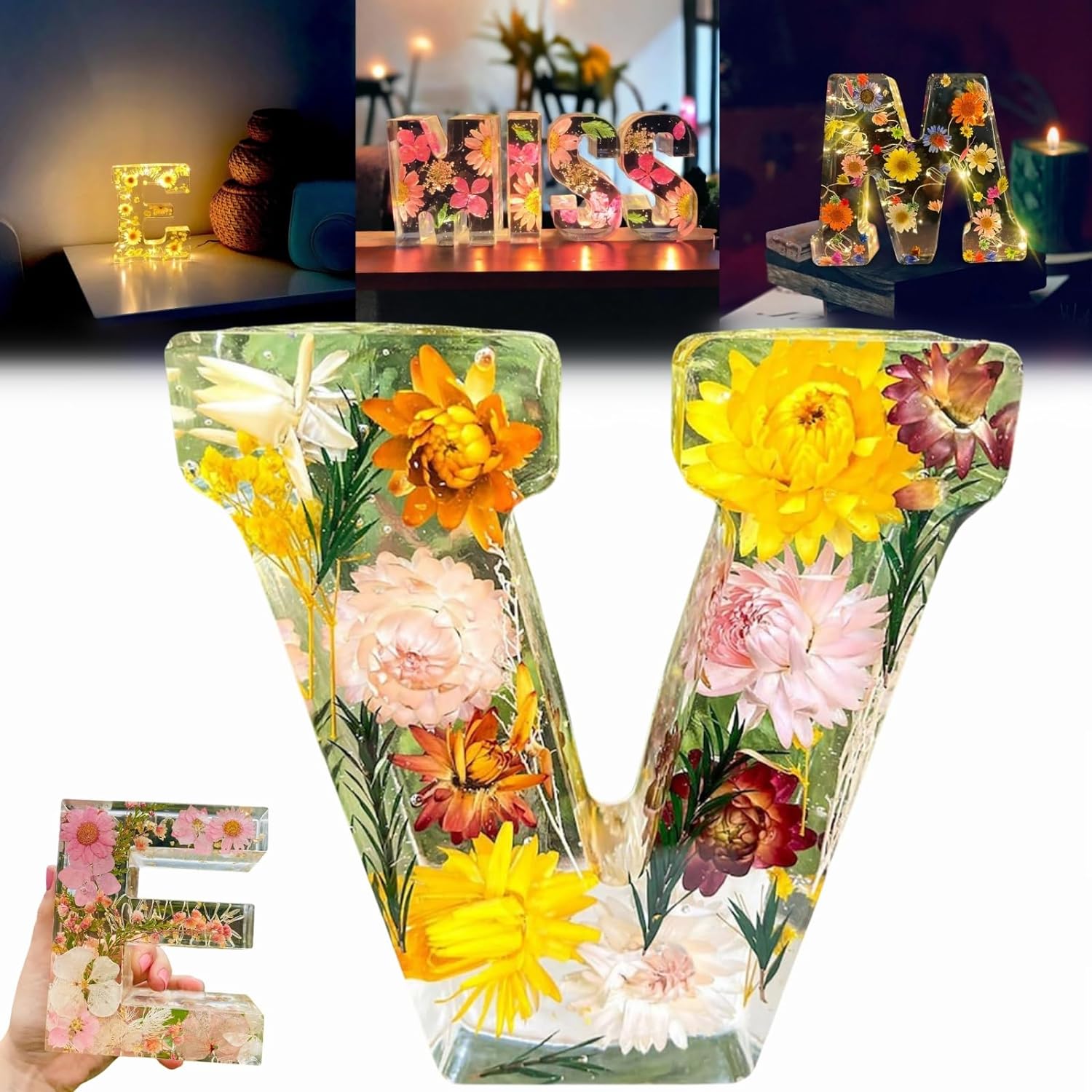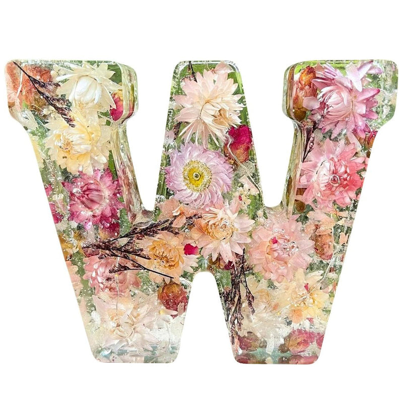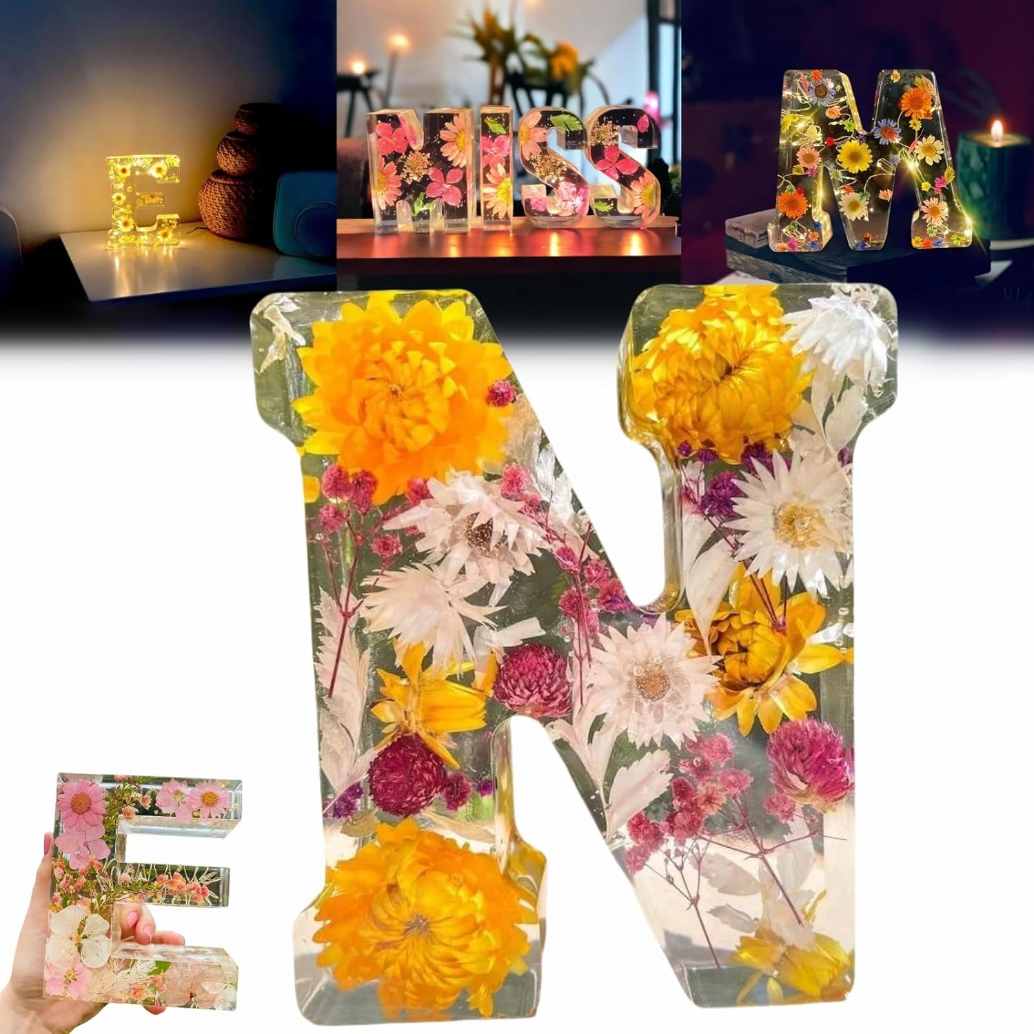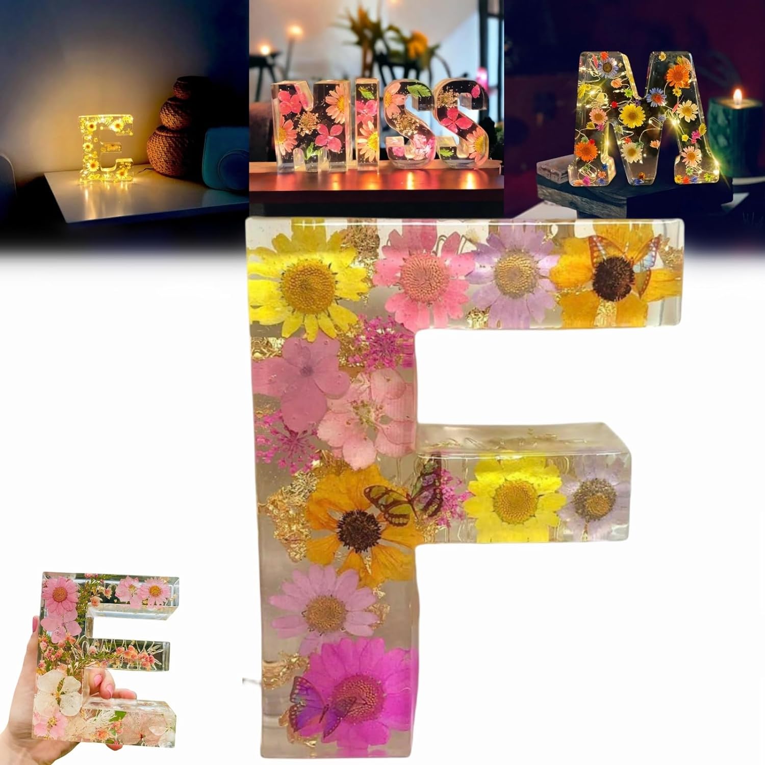 Illuminate your space with the enchanting glow of our Floral Resin Night Light, meticulously crafted with dried flowers encapsulated in crystal-clear resin. This personalized alphabet design adds a touch of nature and elegance to any room, making it a perfect gift or unique decor piece.